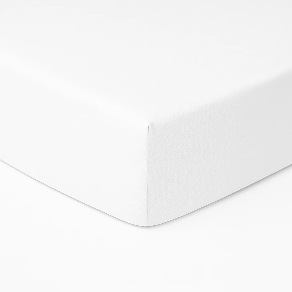Balta medvilninė paklodė su guma – įvairių dydžių ir spalvų.