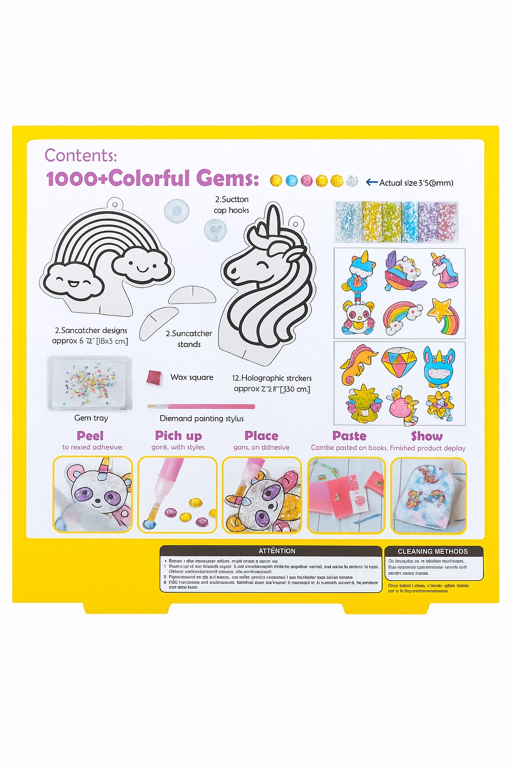 Spalvinga deimantinė dėlionė su lipdukais rinkinyje rasite daugiau nei 1000 ryškių spalvotų brangakmenių, 12 holografinių lipdukų bei 2 dideles saulės gaudykles su stoveliais ir siurbtukais, kad jas būtų galima eksponuoti lange ar ant stalo. Vaikai dekoruoja elementus naudodami specialų pieštuką-stilių, kuris leidžia lengvai perkelti „deimantus“ ant lipnių paviršių – be netvarkos ir klijų!