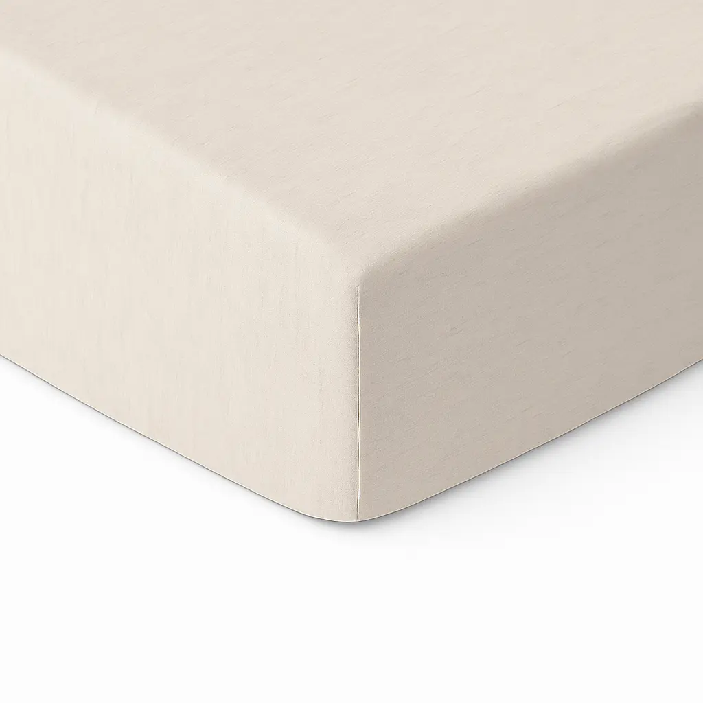 Kreminė medvilninė paklodė su guma – įvairių dydžių ir spalvų.