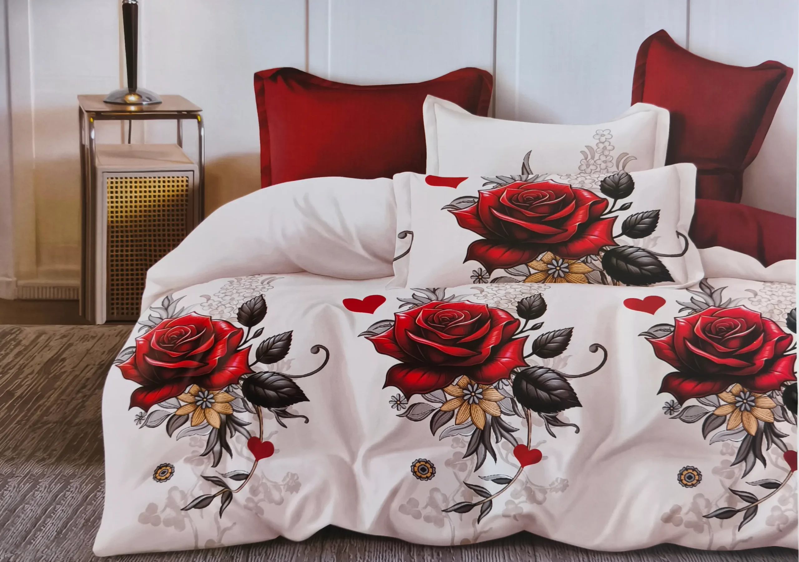 Patalynės komplektas 200×220 satino medvilnės su rožėmis
