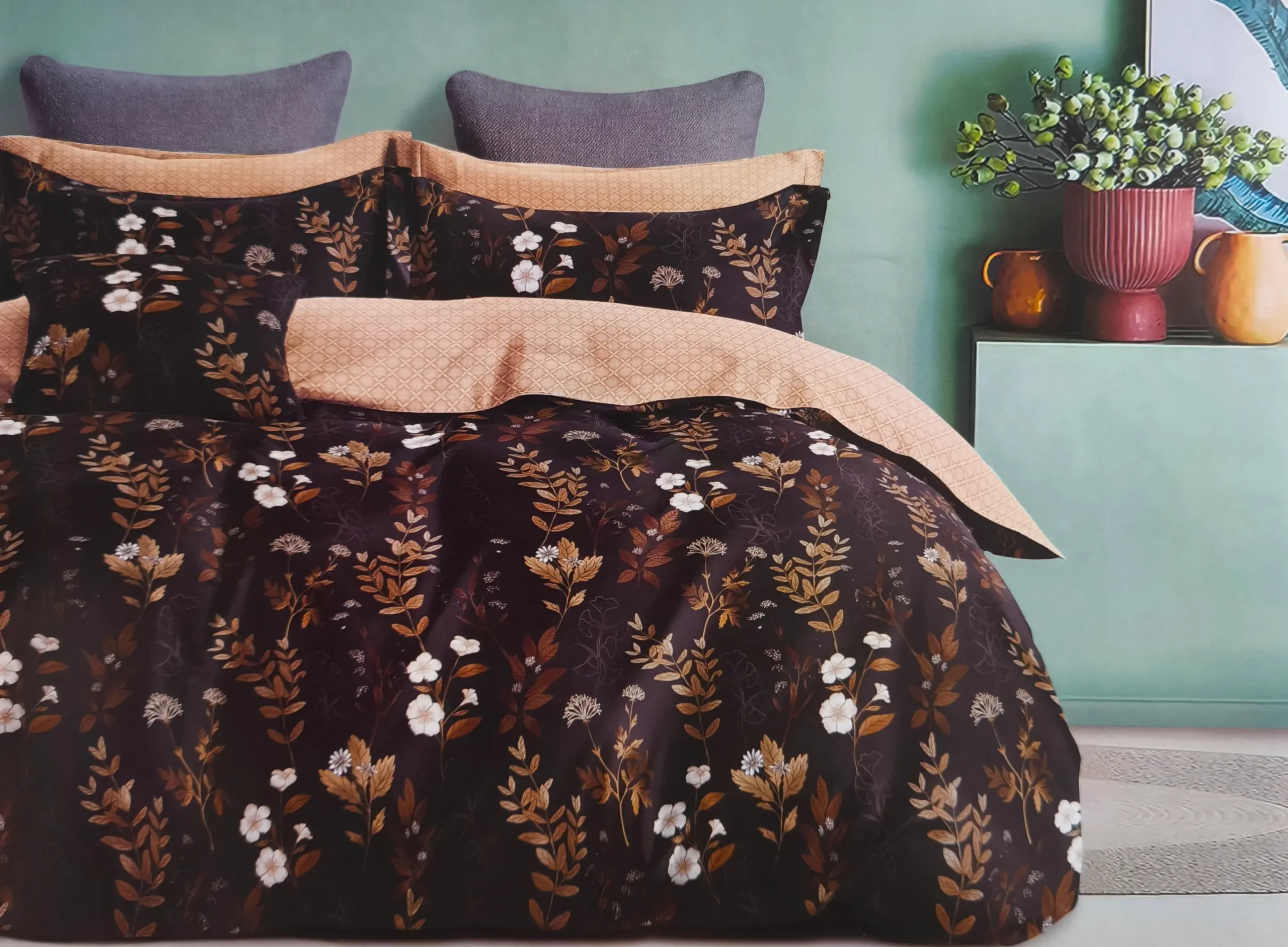 Patalynės komplektas 200×220 iš satino medvilnės juoda spalva su raštu – prabanga ir komfortas jūsų miegamajam.