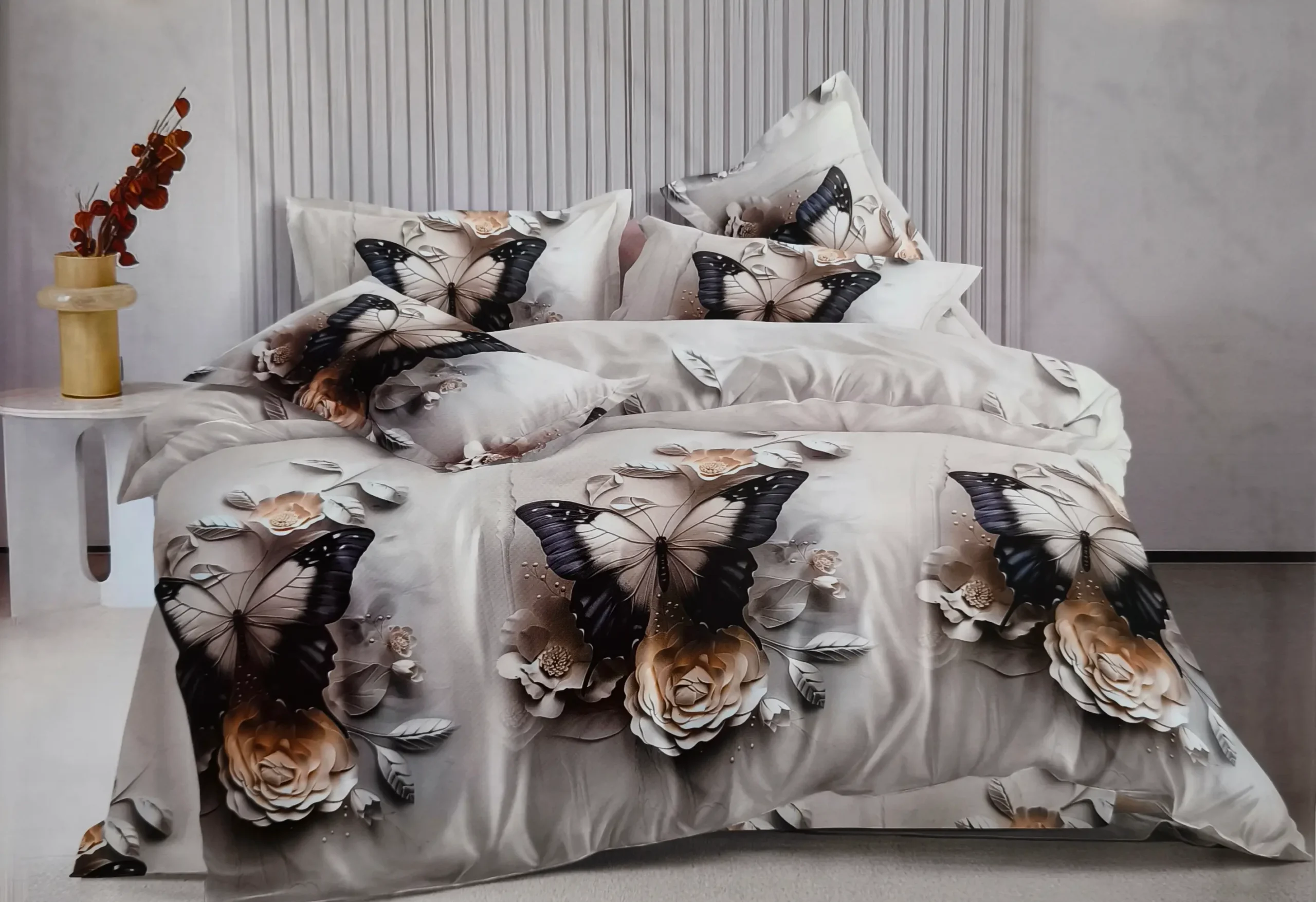 Dvigulės satino medvilnės patalynės komplektas 200×220 šviesus su drugeliais – prabanga ir komfortas jūsų miegamajam.