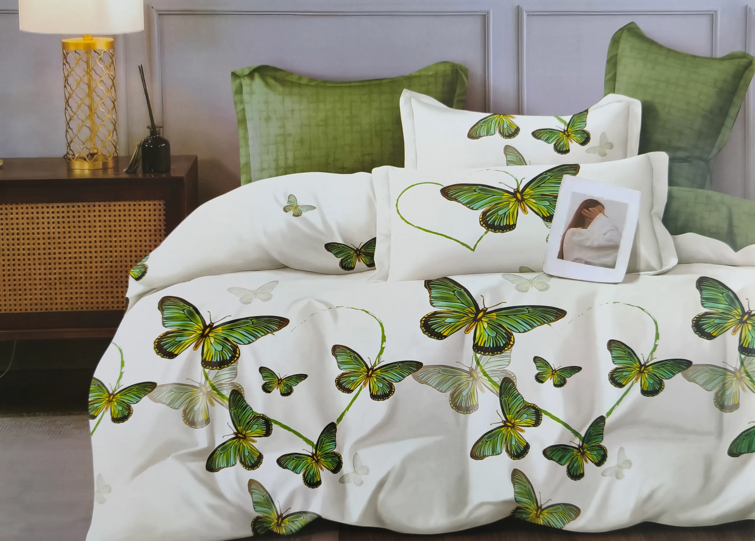 Dvigulės satino medvilnės patalynės komplektas 200×220 žalios spalvos su raštu – prabanga ir komfortas jūsų miegamajam.