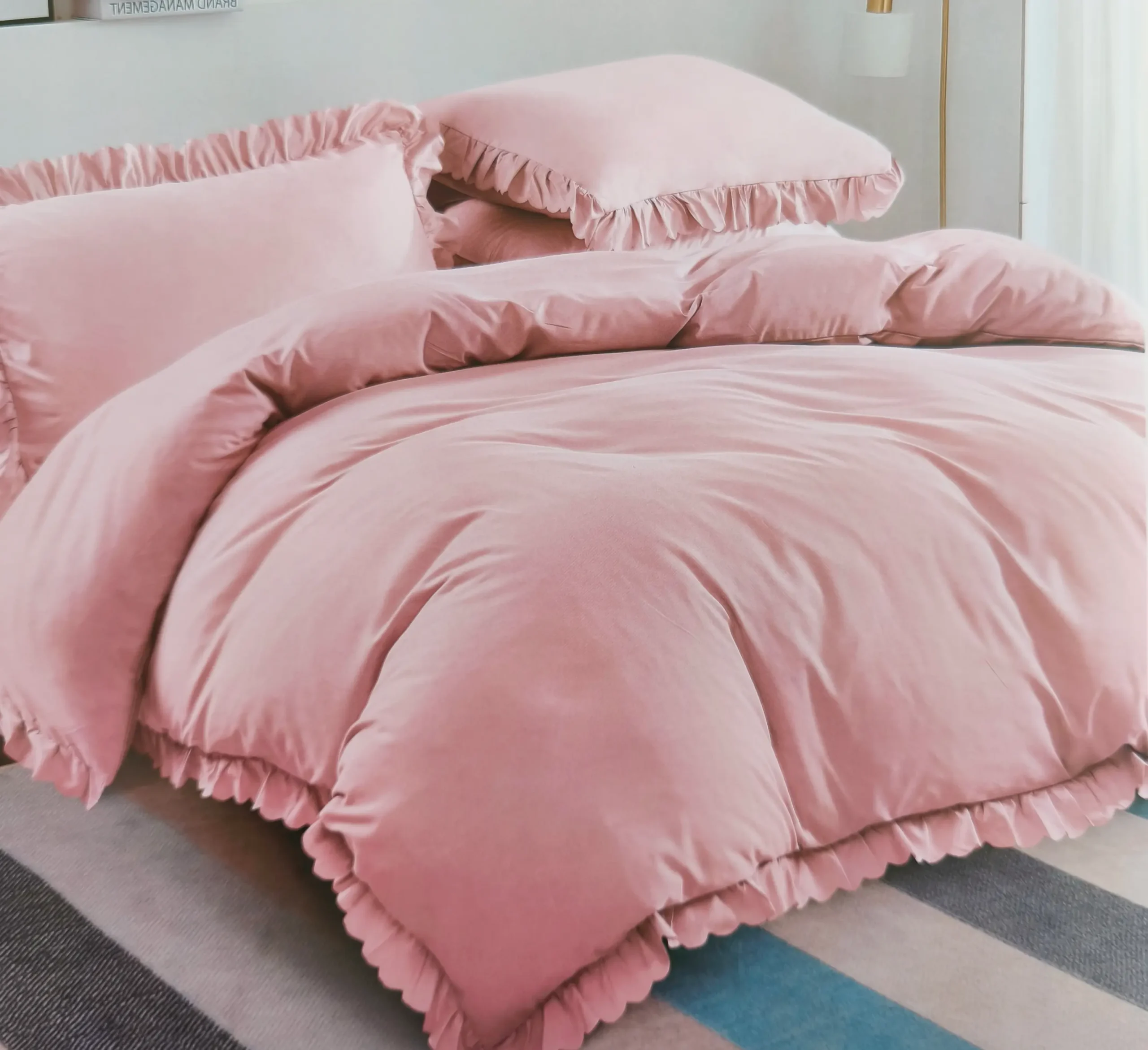 Natūrali medvilnė garsėja savo ilgaamžiškumu ir lengva priežiūra. Šis patalynės komplektas ilgai išlaiko spalvą bei formą net po daugybės skalbimų. Rožinė spalva suteikia miegamajam jaukumo, romantikos ir šilumos, o minimalistinis dizainas lengvai dera prie įvairių interjero stilių – nuo klasikinio iki modernaus.
