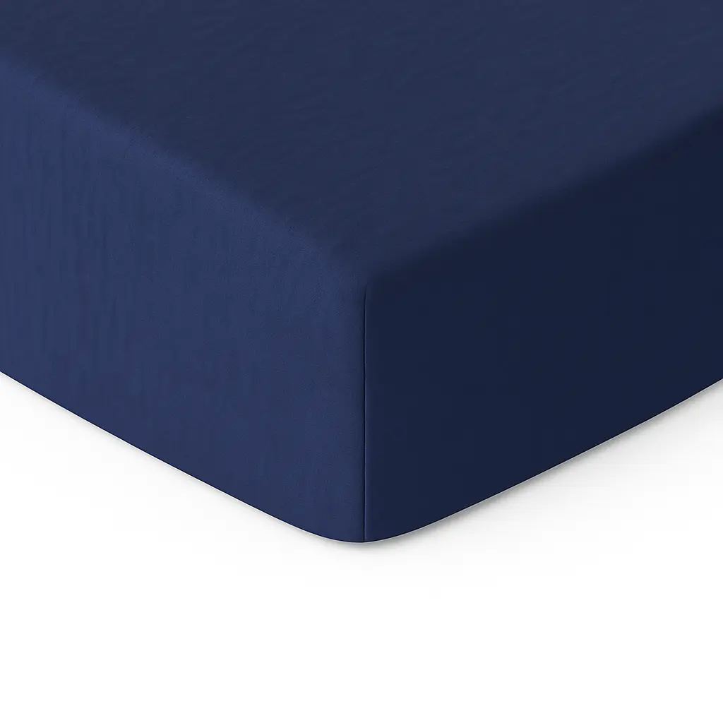 Tamsiai mėlyna medvilninė paklodė su guma – įvairių dydžių ir spalvų.