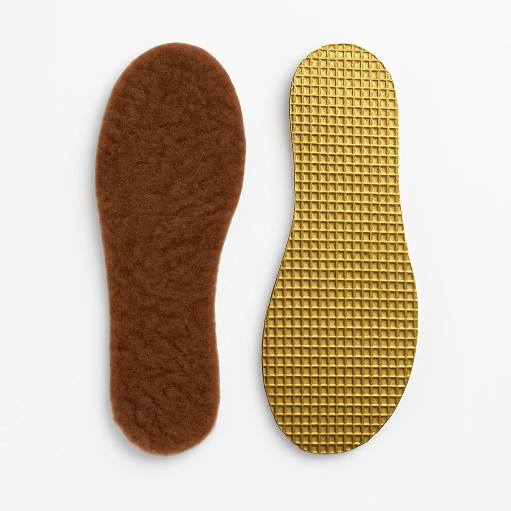 Ieškote tikrai šiltų vidpadžių šaltam sezonui? Šie žieminiai vilnos vidpadžiai su termo folija puikiai tinka tiek kasdieniams batams, tiek žieminiams aulinukams. Termo folija išlaiko šilumą, o vilnos kailiukas užtikrina komfortą net šalčiausiomis dienomis. Apatinė pusė padengta specialia auksinės spalvos termoizoliacine folija, kuri sulaiko šilumą bato viduje ir apsaugo nuo šalčio iš apačios.